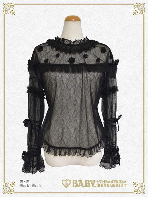 - Black lace fabric×Black opal ribbon×Black lace×Black soft tulle