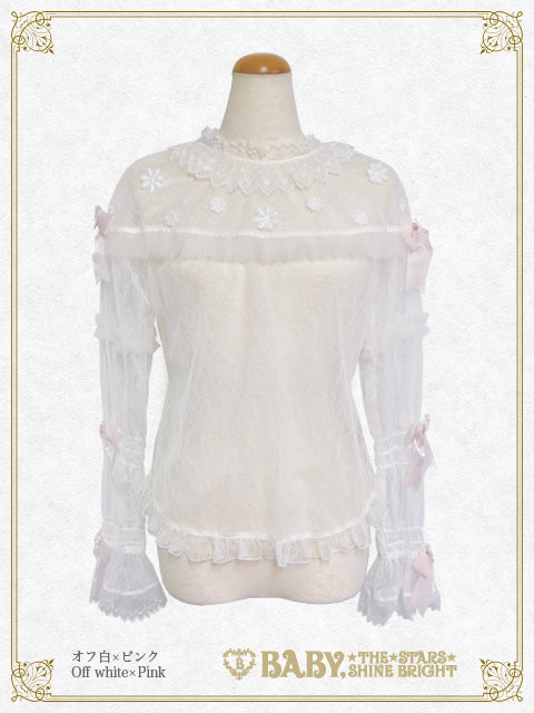 - White lace fabric×Pink opal ribbon×White lace×White softtulle tulle