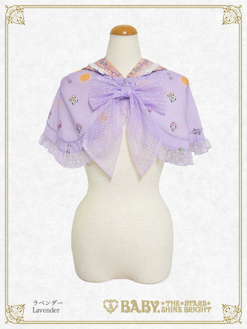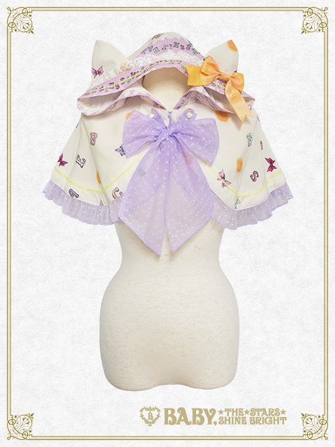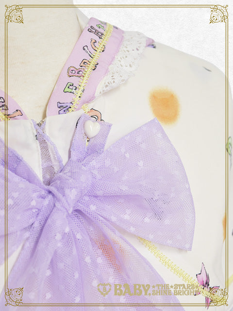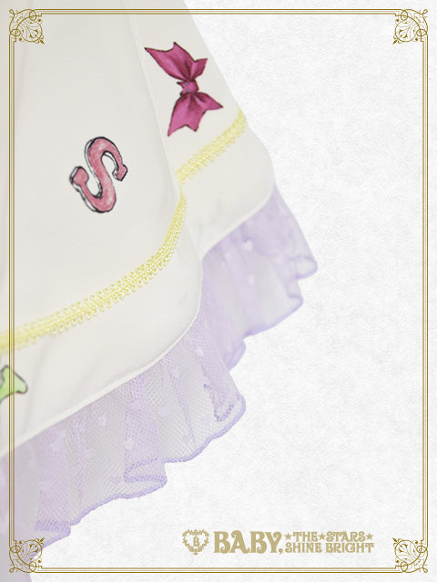 - White×Lavender heart tulle×Orange Stripe satin ribbon×Yellow blade×White lace