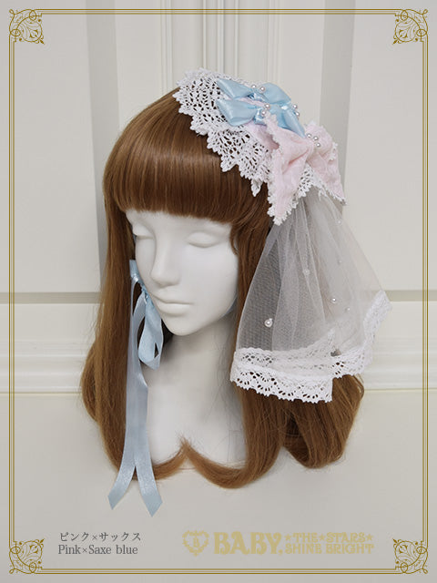 - Saxe opal ribbon×White lace×White Pearl ×gold button