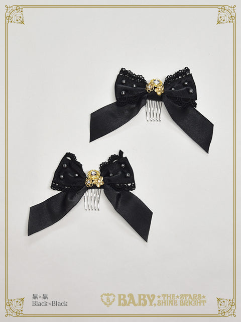 - Black opal ribbon×Black lace×Black Pearl×gold button