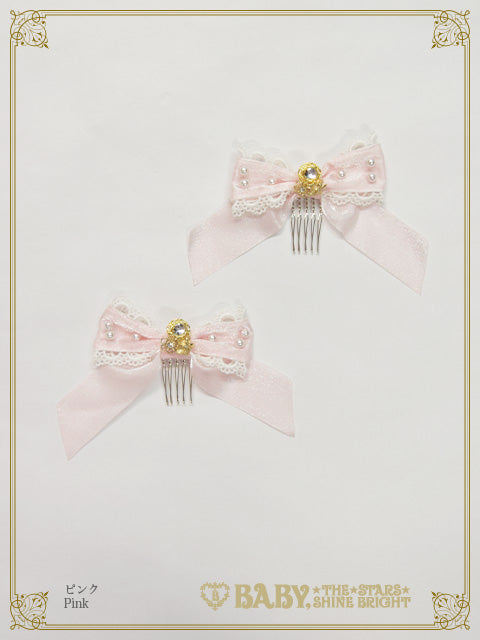 - Pink opal ribbon×White lace×White Pearl×gold button