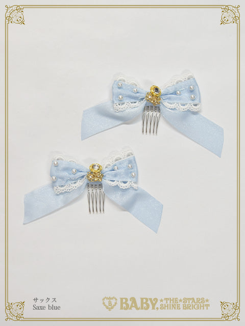 - Saxe opal ribbon×White lace×White Pearl ×gold button