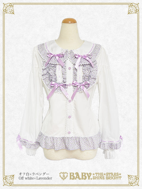 - White×Lavender small floral pattern×White lace×Lavender ribbon