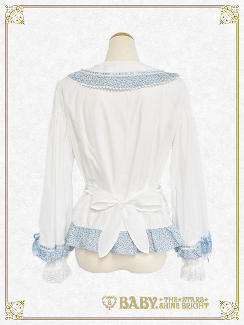 - White×Saxe blue small floral pattern×White lace×Saxe blue ribbon