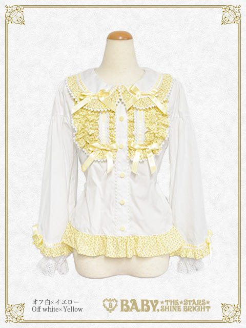 - White×Yellow small floral pattern×White lace×Yellow ribbon
