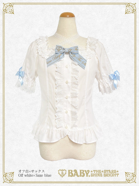 - White×Saxe blue ribbon×White lace