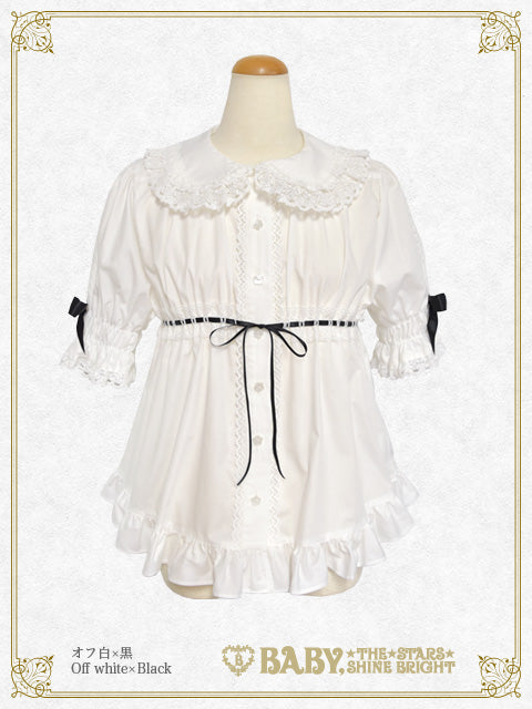 - White×Black ribbon×White lace×White button