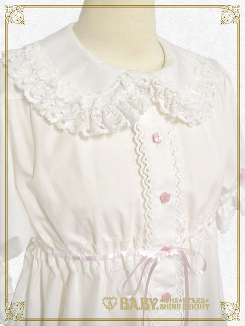 - White×Pink ribbon×White lace×Pink button