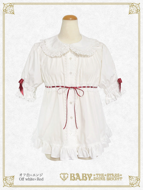 - White×Red ribbon×White lace×White button