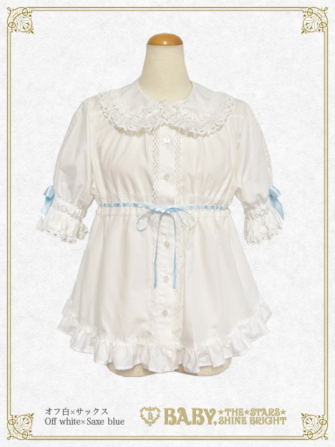- White×Saxe blue ribbon×White lace×White button