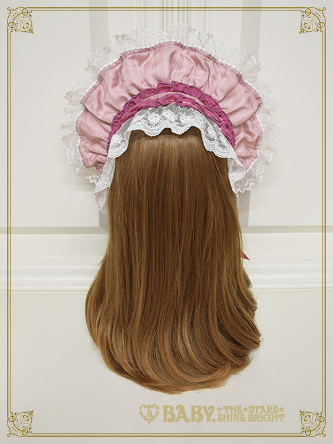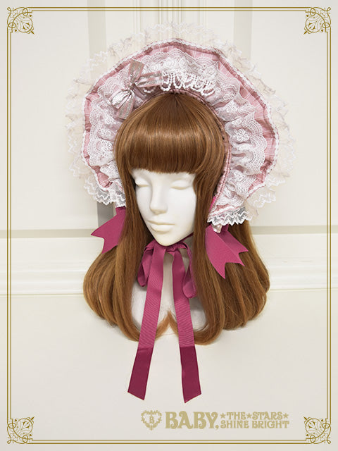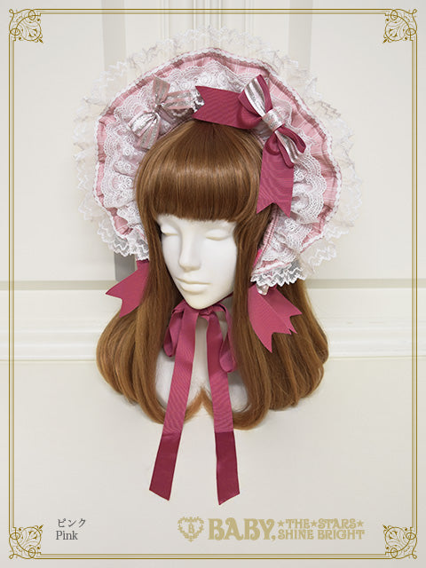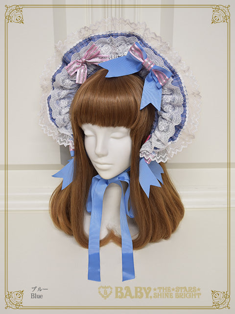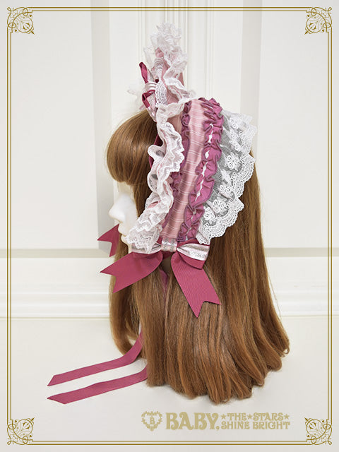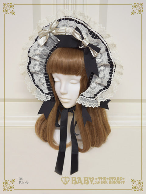 広幅のチュールレースやバラのケミカルレースに大小のおリボンを添えた、プリンセスたちの舞踏会をイメージした華やかなボンネットです♡