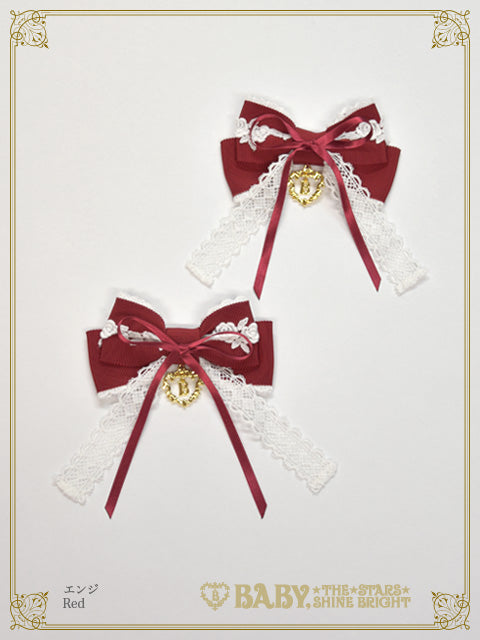 グログランリボンにローションレース、細身のサテンリボン、そして薔薇モチーフのケミカルレースをあしらった2個1組のおリボンクリップです♡
