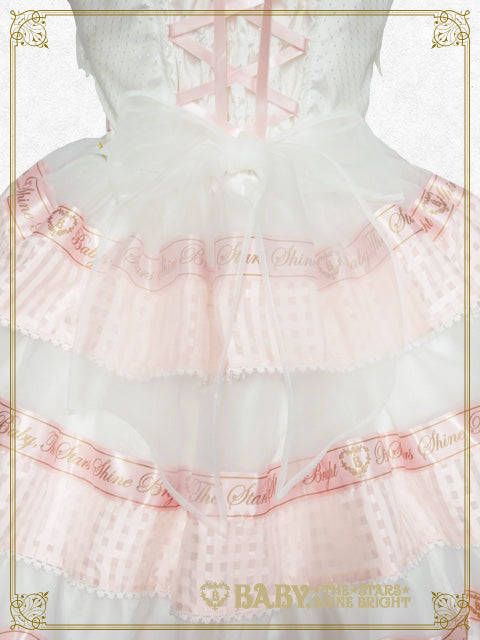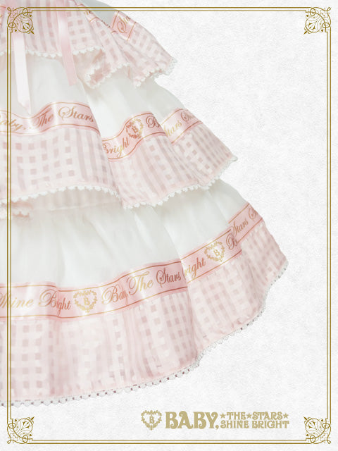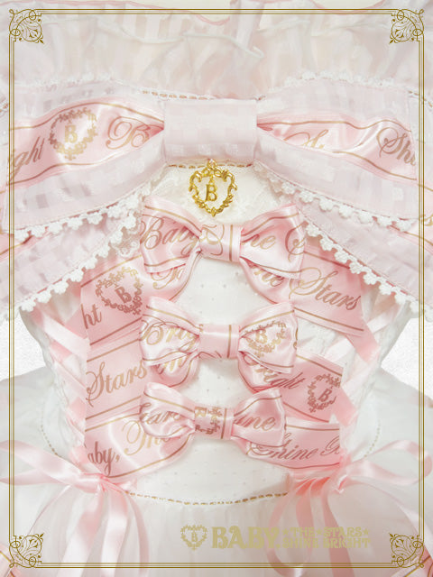 ドットドビー、オーガンジー、シアーチェックの生地の組み合わせにBABYのオリジナルのロゴ入りおリボンをあしらった、