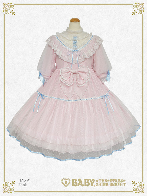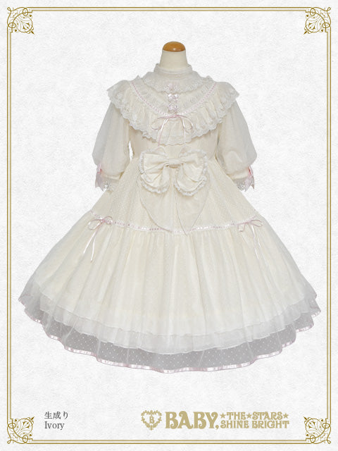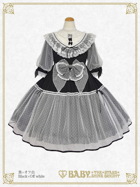 キラキラと輝くドットドビーデシン地にダイヤ柄チュールを重ねた、ふんわりとしたシルエットが可愛らしいワンピースです♪