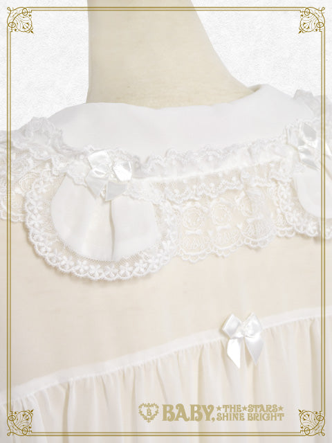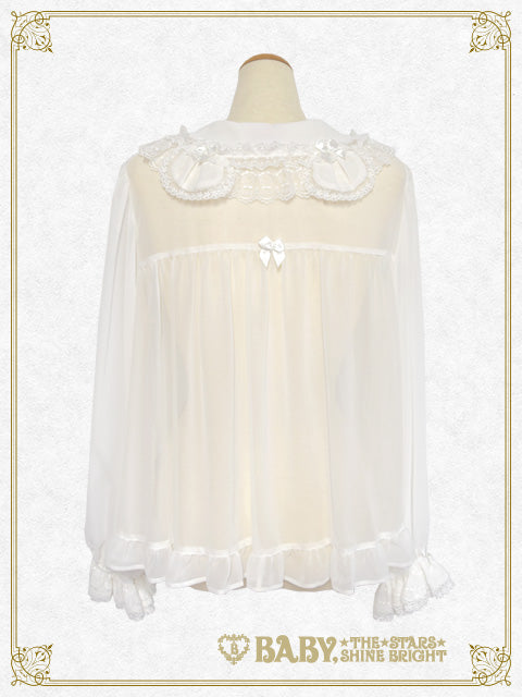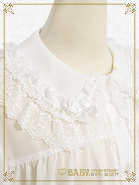 軽やかなシフォン地を使用した、くまみみデザインが可愛らしいブラウスは衿元やお袖口にくまくみゃちゃんのオリジナルチュールレースをあしらい、ベビードールタイプで締め付けが少ないお仕立てとなっております♡