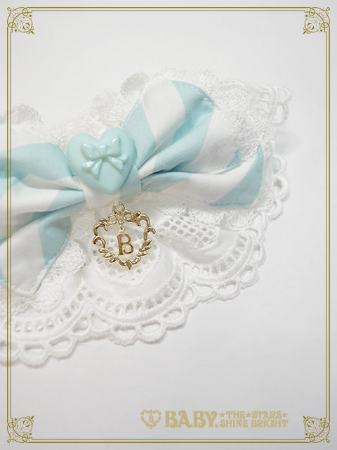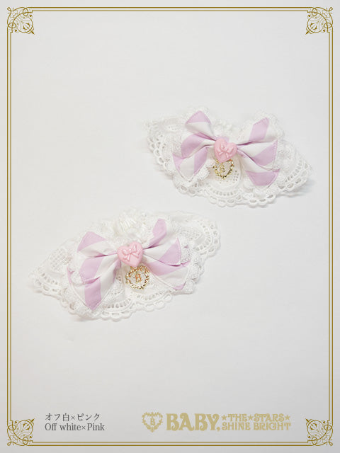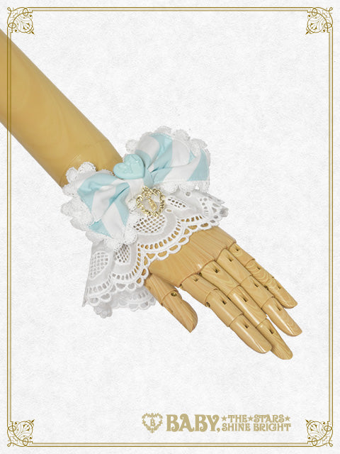 中央にころんとしたハートモチーフのボタンがあしらわれたおリボン付きのお袖留めは、ハートの綿レースを使用し、シリーズで合わせたコーディネートにぴったりです♪