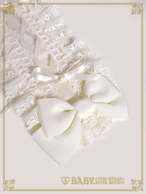 クロスされたおリボンと、おリボン通しレースがポイントの華やかなBABY定番ヘッドドレスです♪