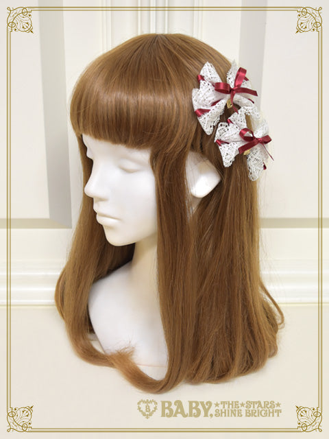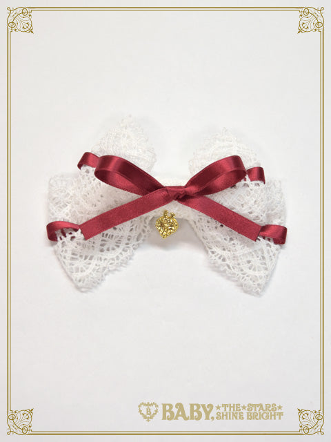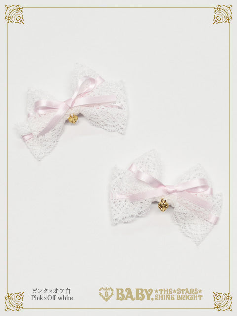 繊細なはしごレースデザインに細身のサテンおリボン、そして中央にあしらわれたBABYオリジナルのプリンセスドロップパーツが特徴的な、
