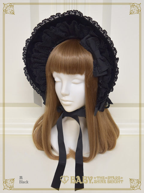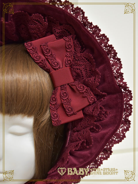 後頭部を完全に覆う形の、クラシカルな雰囲気満点♡なBABY定番ボンネットに、別珍素材バージョンが登場♪