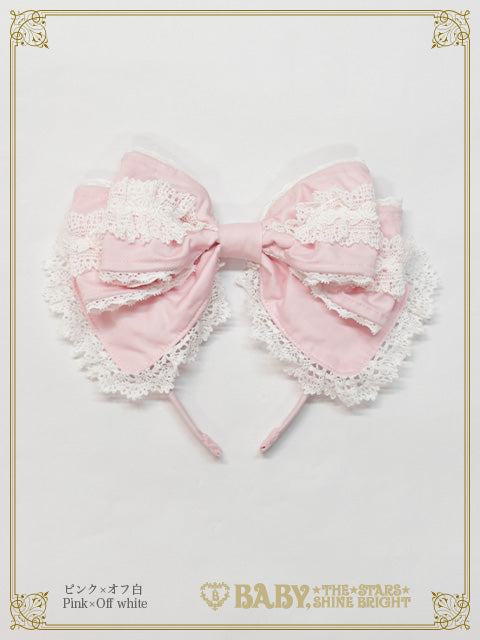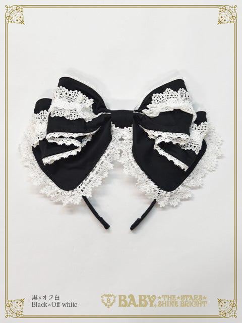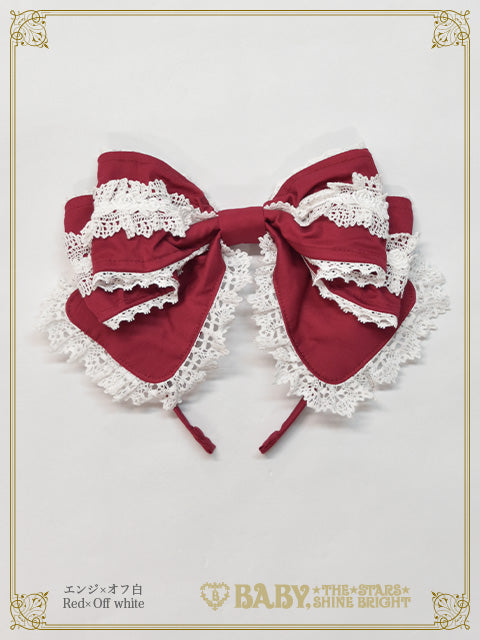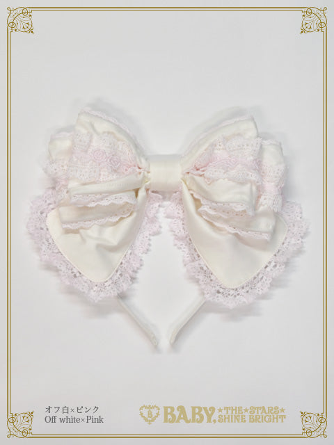 トーションレースにバラのケミカルレースをあしらったリボンカチューシャです。
