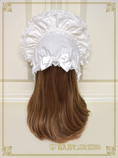 綺麗に形を整えて頂けるワイヤー入りのブリムがポイントの、トーションレ―ス、サテンリボンをあしらったボンネットです♡