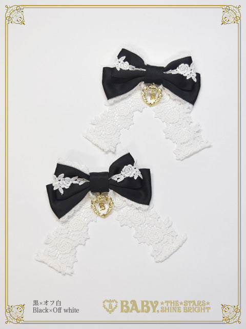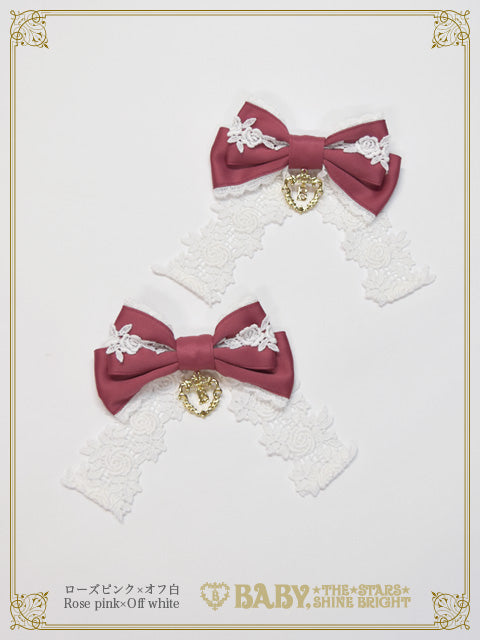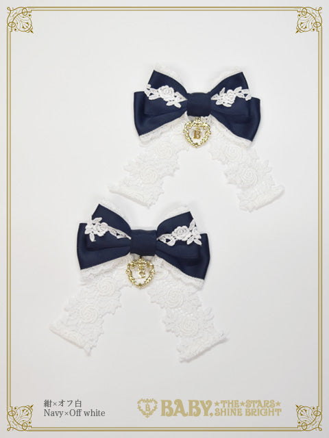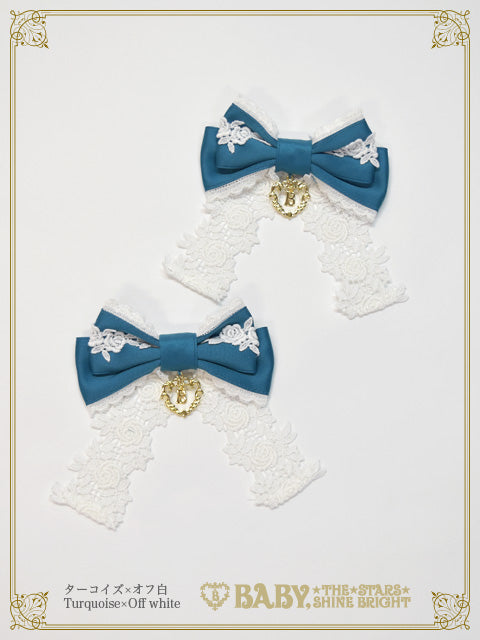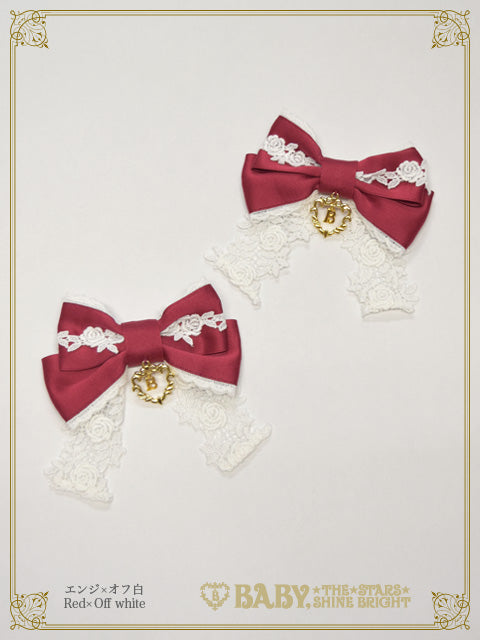お上品な薔薇のケミカルレースと、ゆらゆら揺れるプリンセスドロップチャームが印象的な、ダルサテンリボンでお仕立てした2個1組のおリボンクリップです♡
