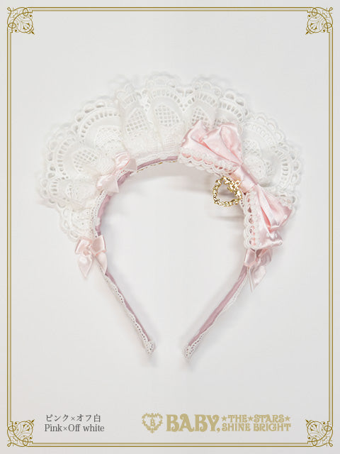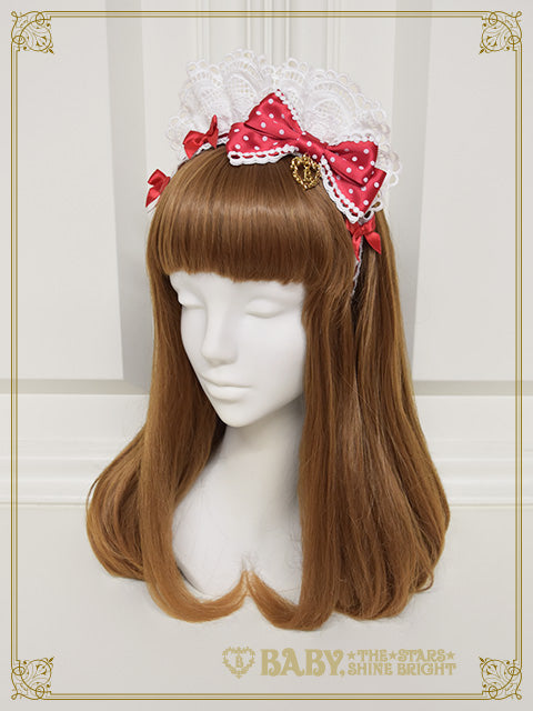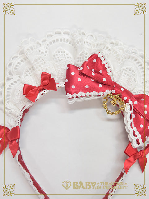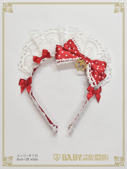 ハートの綿レースにミニリボン、ドットのサテンおリボン装飾をあしらった、カフェ風のCUTEなカチューシャです♡