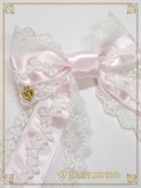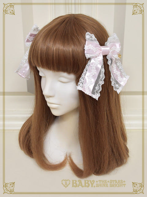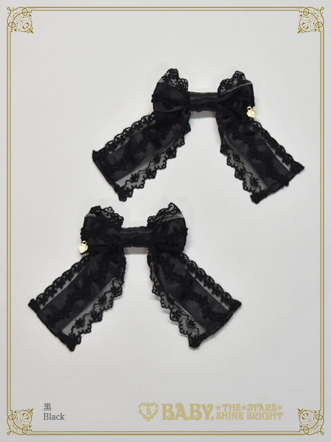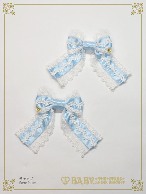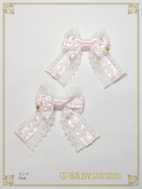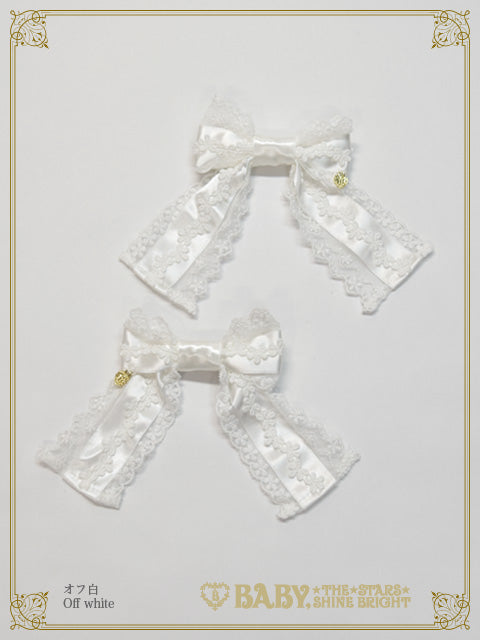 サテンのおリボンにチュールレースとお花のケミカルレースをあしらった、2個1組のおリボンクリップです♡