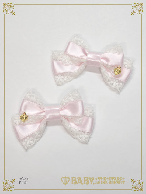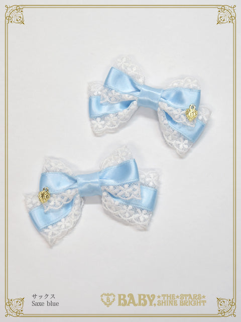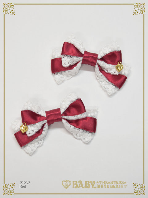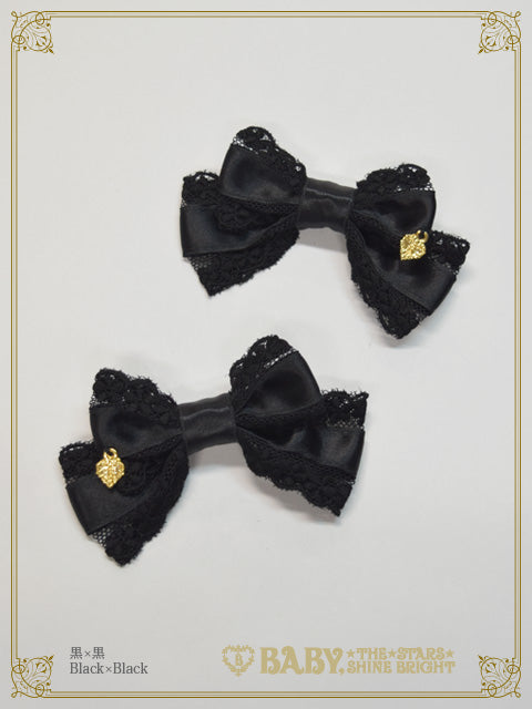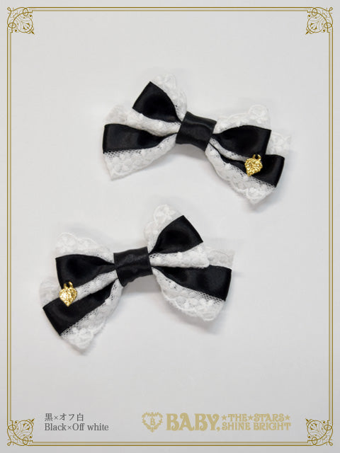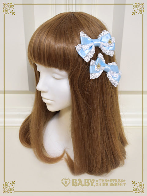 サテンのおリボンにチュールレースをあしらった、小さめのサイズ感が愛らしい2個1組のおリボンクリップです♡