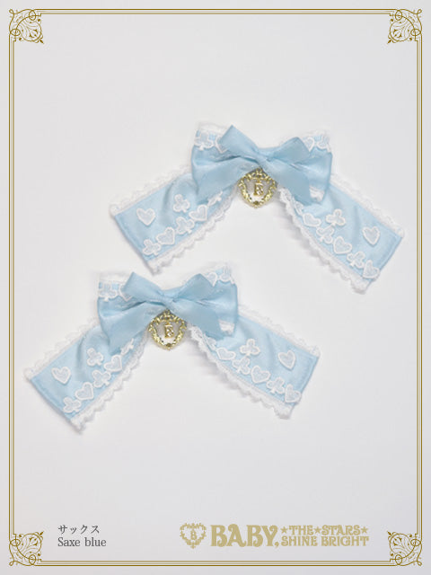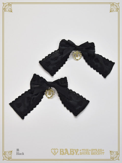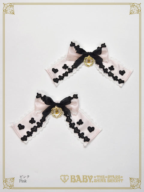 光沢感のあるオパールリボンにトランプ柄のケミカルレースをあしらった、2個1組の華やかなおリボンクリップです♡