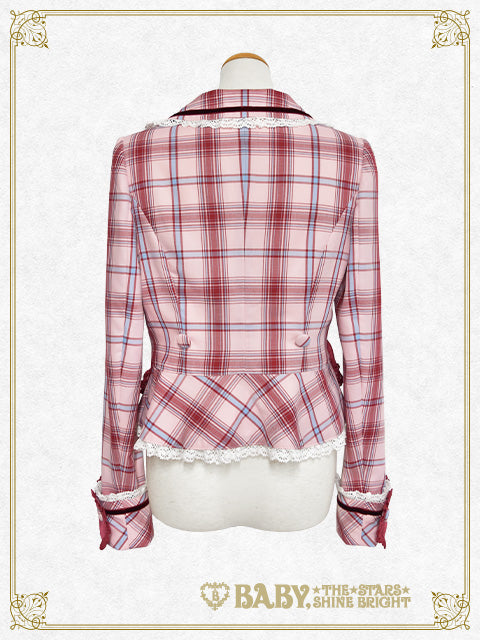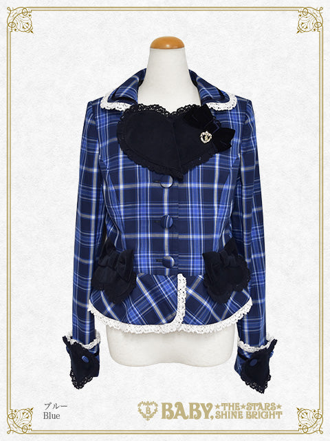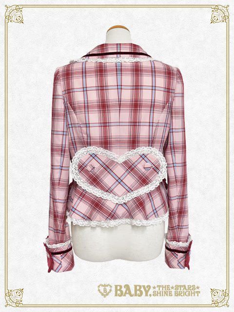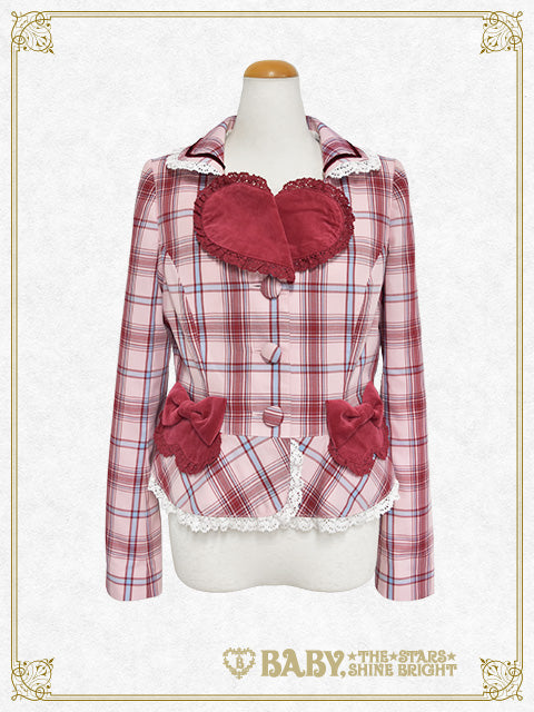 ハート型に見える衿元が可愛らしいタータンチェック地のジャケットです♡