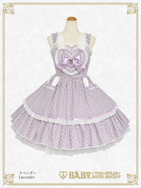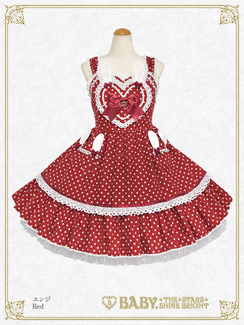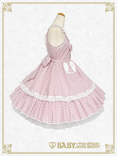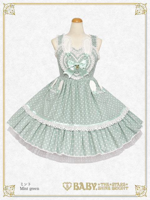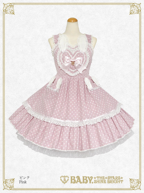 胸元にハートとうさぎさんをあしらったとってもLovelyなジャンパースカートです♡裾にはポップなドットチュール、ポケットはうさぎさんになっており、細部まで心ときめくデザインです♪