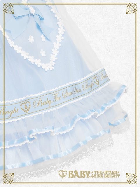 ハートモチーフには可愛らしい大小のお花のケミカルレースをあしらい、胸元とスカート裾にはBABYオリジナルロゴリボンをデコレーションしました♪