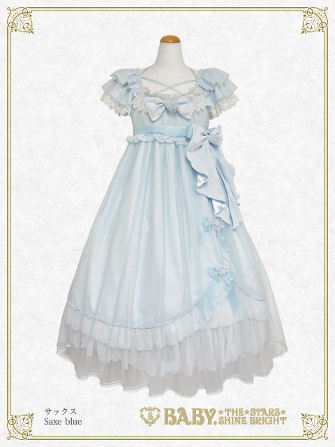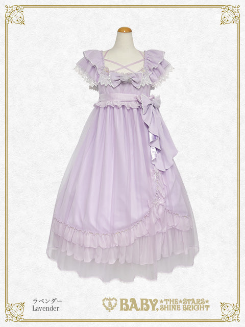 シフォン生地にソフトチュールを重ねた、ふんわりとしたシルエットが華やかでロマンティックなワンピースです♡