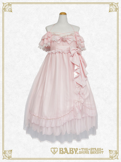 ピュアでエアリーな雰囲気ながらお袖フリル部分を落して、オフショルダーとしてドレッシーにもお召し頂けるデザインとなっております♡