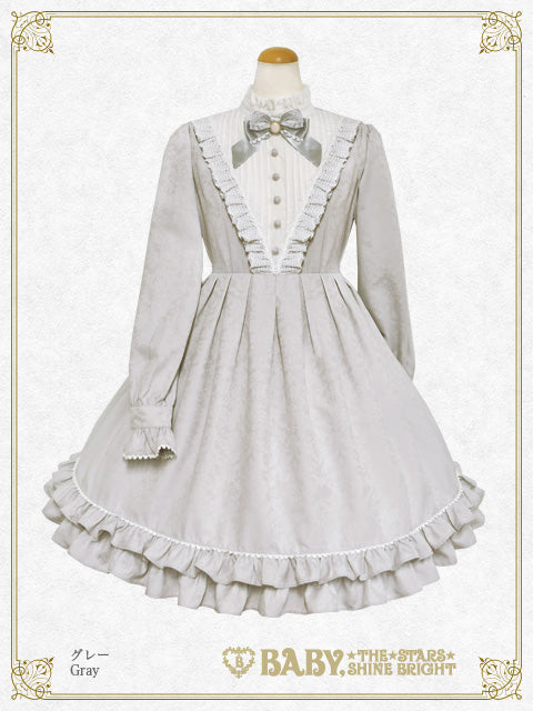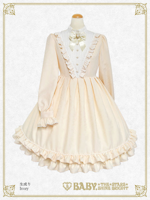 お上品な立ち衿長袖ワンピースは、胸元のくるみボタンや繊細なピンタックがクラシカルな印象です♡