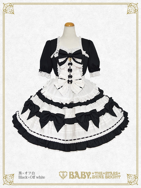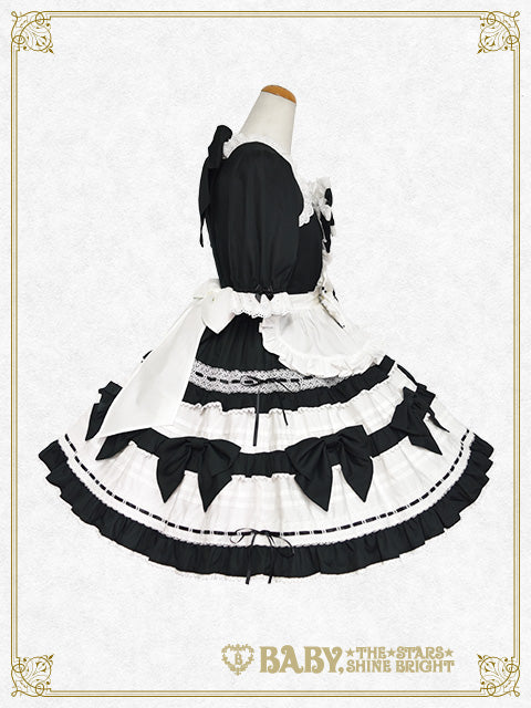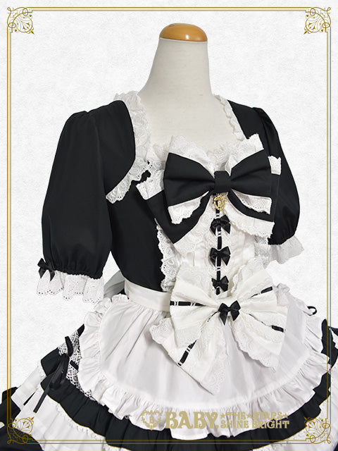 ミニエプロンが付いたカフェテイストのデザインや、身頃やお袖、デコルテ周りにあしらわれたハートの綿レースが愛らしく、まるでアリスの世界に迷い込んだよう…♪