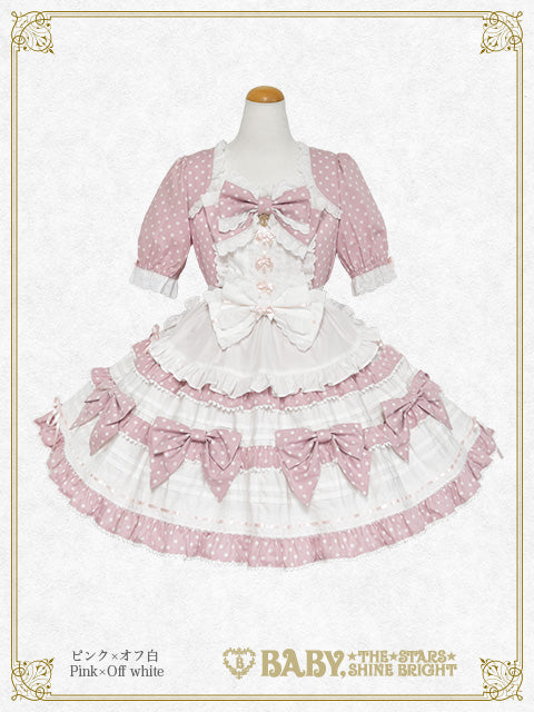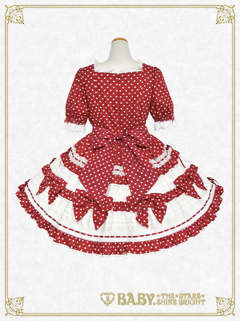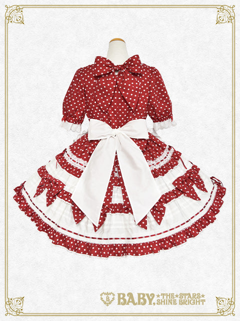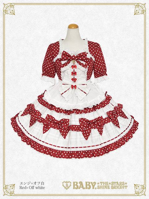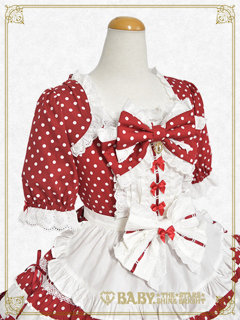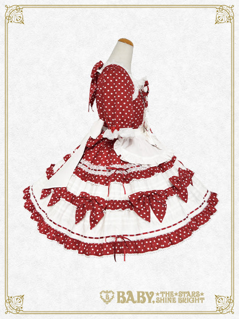 少しレトロでPOPなイメージのドット柄生地を使用しており、お取り外しも可能なミニエプロンがカフェ風でとってもCUTE♡