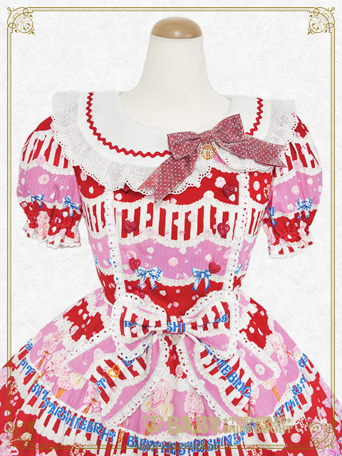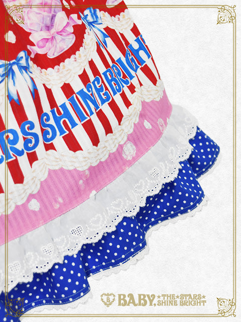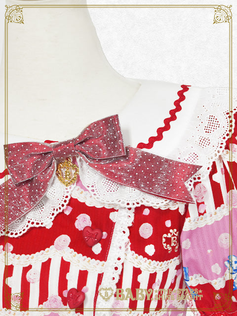涼しげなからみストライプの生地に花びらや、ホイップクリーム、ストライプ柄をミルフィーユ状の層にしたPOPでcuteな世界が広がります♪