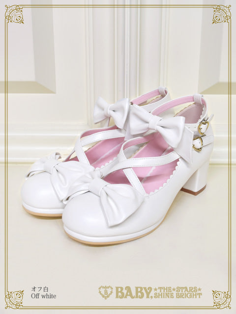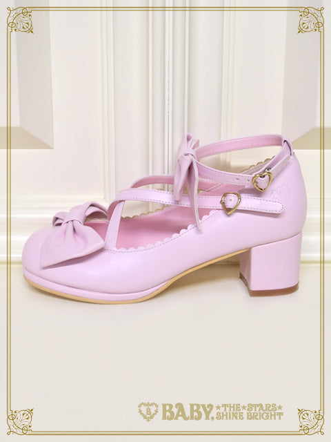 クロスベルトやハートのバックル、スカラップの履き口、カカトのプリンセスドロップの型押しも全て可愛いpoint♡