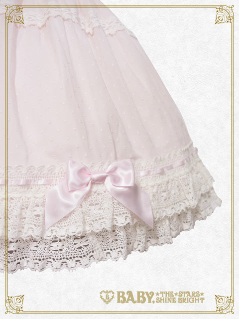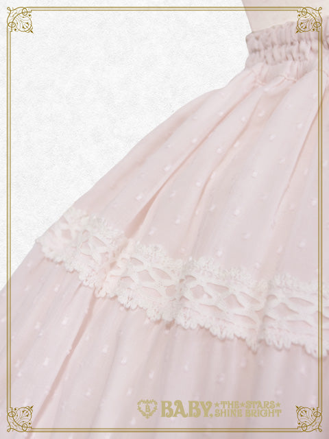広幅トーションレ―スを裾2段にわたって贅沢にあしらった、軽やかで涼し気なスノーカットボイル地を使用したスカートです♪