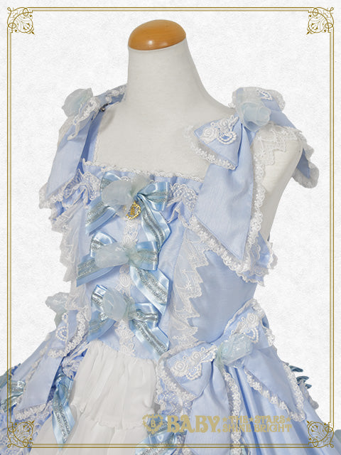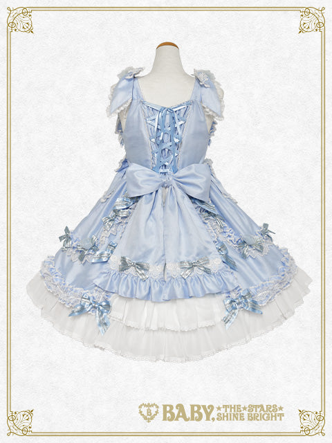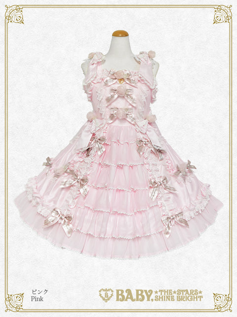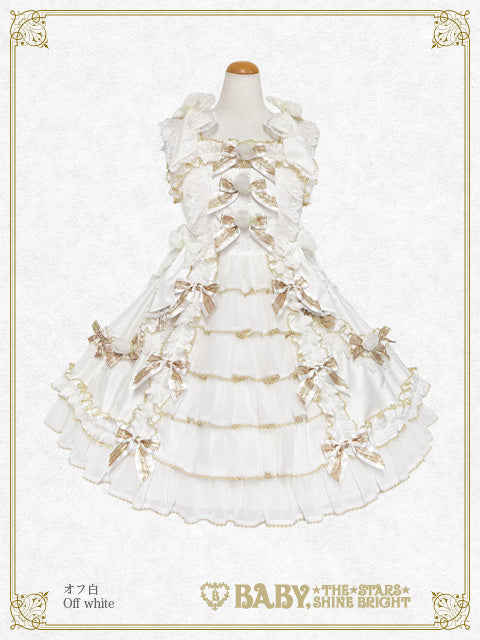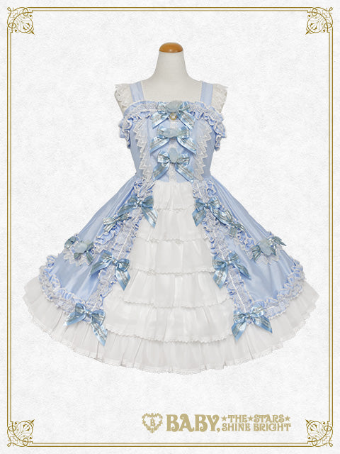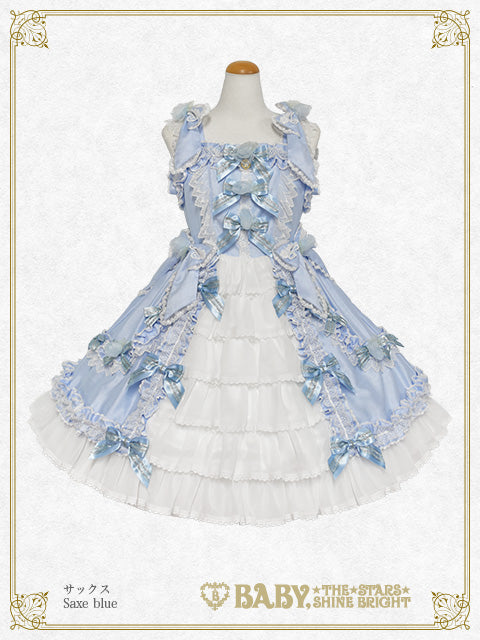 シャンタン地の身頃と、前後スカートにたっぷりと重ねたシフォン素材のバッスルフリルが華やかでドレッシーなジャンパースカートです♡
