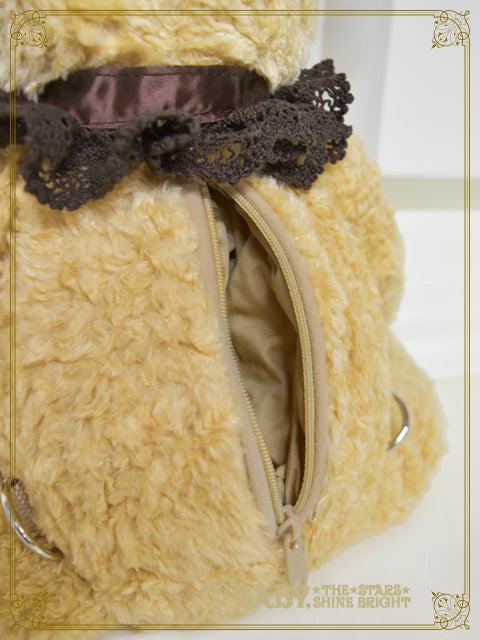 フードを脱がせてもくまみみのくまくみゃちゃん♡肩紐を取り外しておみみの裏の金具に取り付けると、ポシェットとしてもお使い頂けます。