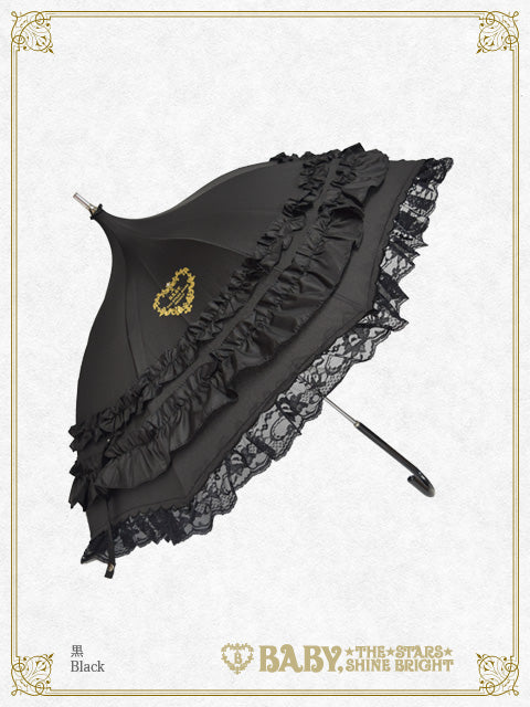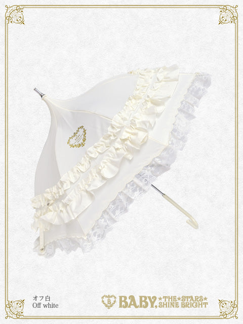 スカラップ刺繍からのぞくラッセルレースがお上品な、パゴダ型のBABY定番アンブレラです♡