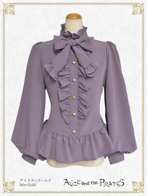 シンプル&クールな立ち襟と同生地のタイ、裾のフリルが特徴的なPIRATES定番のRomeoブラウスに、ボリュームスリーブタイプが登場です。