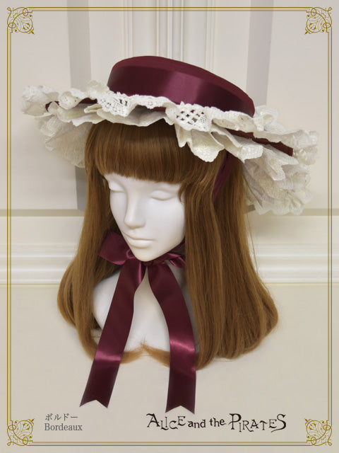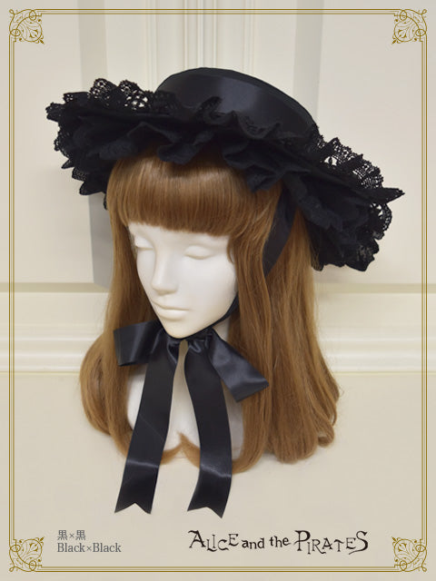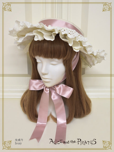 内側に重なる薔薇柄の綿レースのボリューム感が印象的な、クラシカルでお上品なスタイリングがお楽しみ頂けるハットです♥