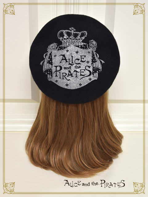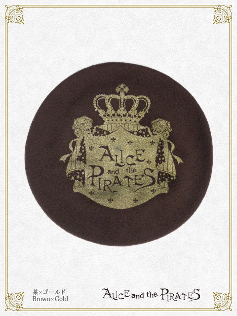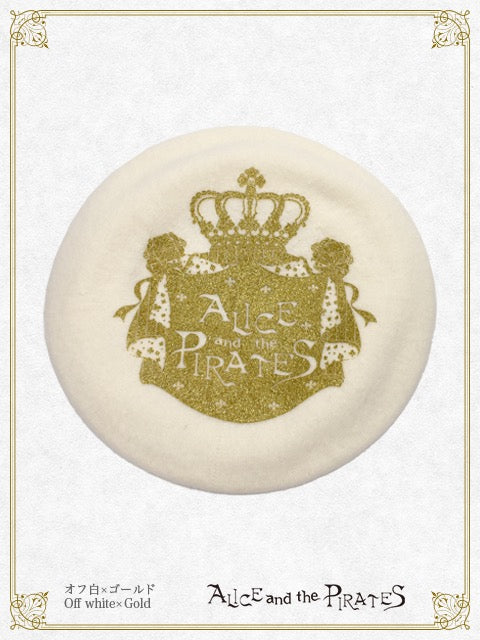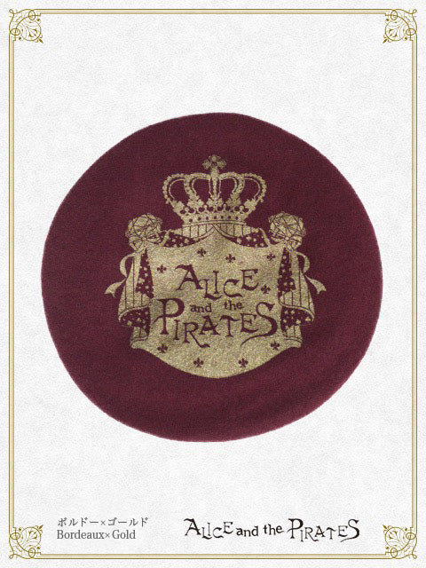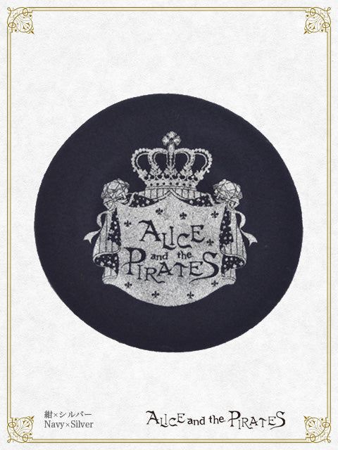 ウール生地の土台に大きくALICE and the PIRATESのロゴがプリントされた、定番のベレー帽です♪