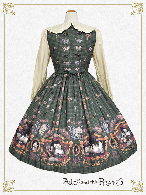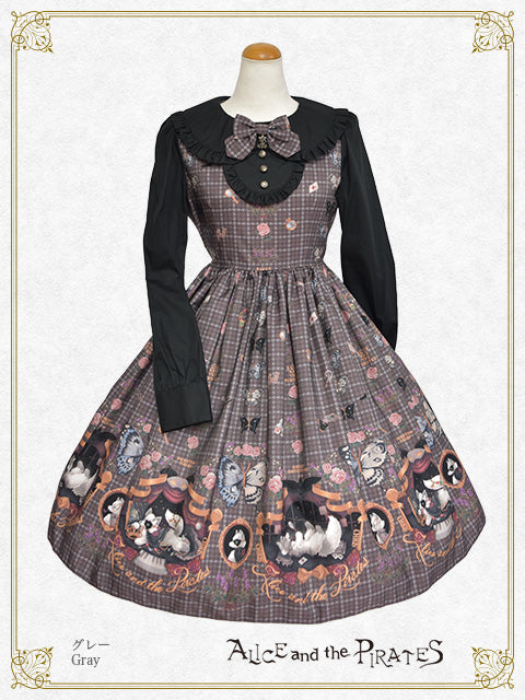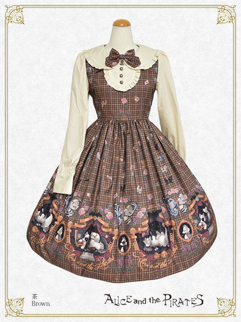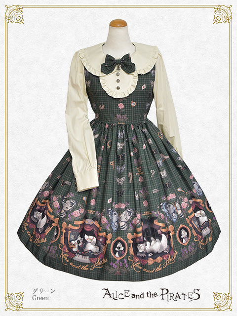 ブラウスをインしているように見える、丸襟・長袖仕様のワンピースは、胸元のおリボン飾り付きジャボがお取り外し可能です♪
