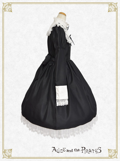 控えめなパフ袖に、レース地を重ねたカフスのデザインがまるで貴婦人のようでありながら、重厚感のある配色がPIRATESらしい妖艶な雰囲気を演出します。